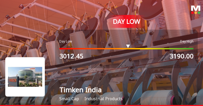 2026-02-05 10:02:40Timken India Ltd experienced a notable decline today, touching an intraday low of Rs 3,023 as the stock faced significant price pressure amid broader market weakness and sectoral underperformance.