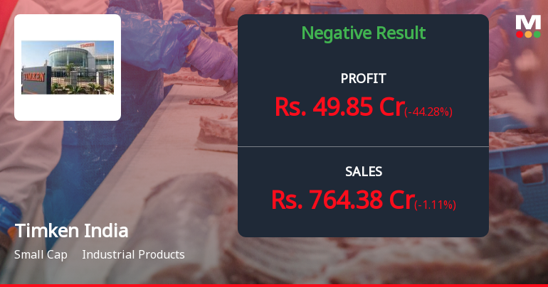 Timken India Ltd Reports Sharp Decline in Quarterly Performance Amid Negative Financial Trend