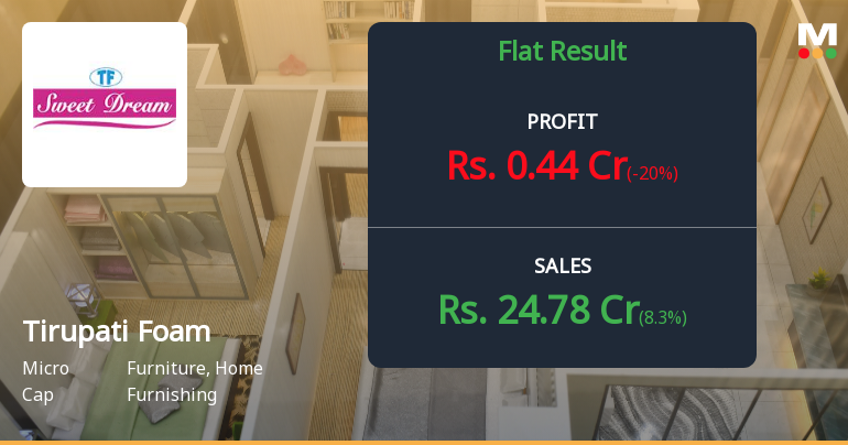 2026-02-11 20:01:02Tirupati Foam Ltd., an Ahmedabad-based polyurethane foam and mattress manufacturer, reported net profit of ₹0.55 crores for Q2 FY26, marking a modest 22.22% quarter-on-quarter improvement from ₹0.42 crores in Q1 FY26. However, year-on-year performance tells a more concerning story, with profits climbing just 22.22% from ₹0.45 crores in Q2 FY25. The micro-cap company, with a market capitalisation of ₹34.00 crores, saw its shares surge 5.00% to ₹81.06 following the results announcement, though the stock remains deeply underwater, down 36.77% over the past year and trading 40.40% below its 52-week high of ₹136.00.
