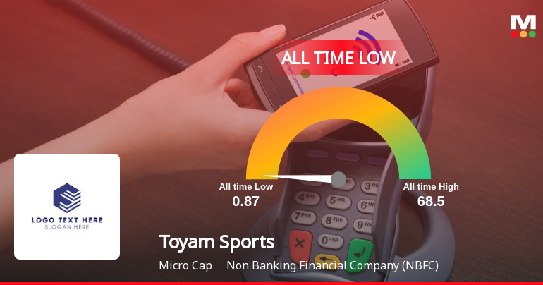 2026-01-30 14:27:30Toyam Sports Ltd, a Non Banking Financial Company (NBFC), has reached a new all-time low price of Rs.0.88, marking a significant milestone in its ongoing decline. The stock’s performance continues to lag behind both its sector and the broader market, reflecting persistent difficulties in its financial and operational metrics.