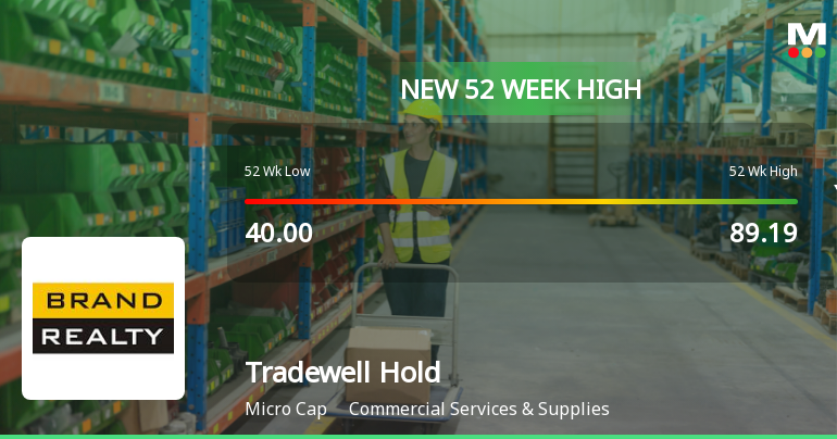 2026-03-25 09:49:32With a sustained six-day rally delivering a 28.01% gain, Tradewell Holdings Ltd surged to a fresh 52-week high of Rs 93.93 on 25 Mar 2026, marking a remarkable ascent from its 52-week low of Rs 40. This price milestone underscores the stock’s strong momentum amid a broader market environment where the Sensex climbed 1.5% but remains below its 50-day moving average.