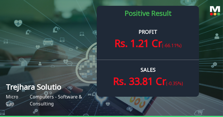 2026-02-14 00:09:21Trejhara Solutions Ltd., a micro-cap information technology solutions provider with a market capitalisation of ₹524.00 crores, reported a concerning sequential profit decline in Q3 FY26, with consolidated net profit plummeting 66.11% quarter-on-quarter to ₹1.21 crores from ₹3.57 crores in Q2 FY26. Despite relatively stable revenue at ₹33.81 crores (down just 0.35% QoQ), the sharp profit contraction has intensified concerns about the company's operational efficiency and earnings quality.