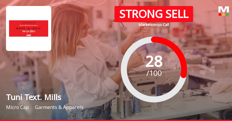 2026-02-03 10:16:54Tuni Textile Mills Ltd is rated Strong Sell by MarketsMOJO, with this rating last updated on 29 January 2026. However, the analysis and financial metrics presented here reflect the stock's current position as of 03 February 2026, providing investors with the latest insights into the company’s fundamentals, valuation, financial trends, and technical outlook.