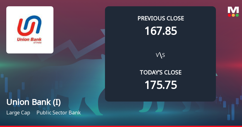 2026-03-25 09:32:11The Sensex advanced 1.24% on 25 Mar 2026, yet Union Bank of India outperformed with a 3.16% gain, touching an intraday high of Rs 179.55. This 1.55 percentage-point outperformance signals a stock-specific momentum shift rather than a broad market lift.