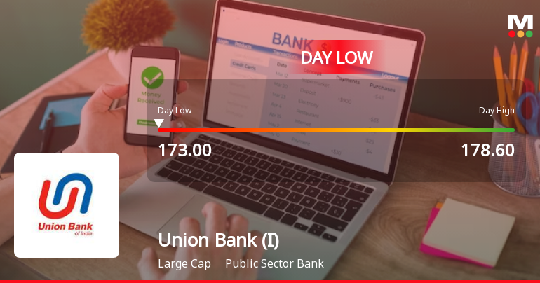 2026-03-27 10:01:13Union Bank of India’s shares declined sharply on 27 Mar 2026, touching an intraday low of Rs 174, reflecting a 3.55% drop as the stock underperformed its sector and broader market amid prevailing negative sentiment.