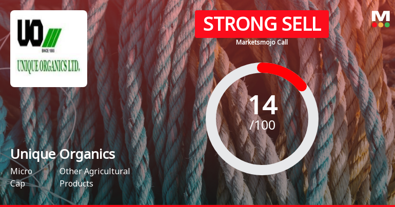 2026-01-07 10:10:23Unique Organics Ltd is rated Strong Sell by MarketsMOJO. This rating was last updated on 30 May 2025, reflecting a significant reassessment of the stock’s outlook. However, the analysis and financial metrics discussed below are based on the company’s current position as of 07 January 2026, providing investors with the latest insights into its performance and prospects.