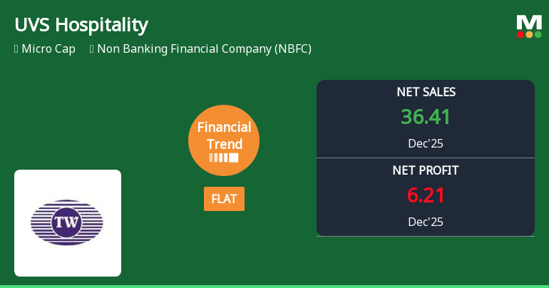 2026-02-16 12:00:32UVS Hospitality & Services Ltd, a key player in the Non Banking Financial Company (NBFC) sector, has reported a flat financial performance for the quarter ended December 2025, signalling a pause in its previously strong growth trajectory. Despite achieving its highest quarterly net sales of ₹36.41 crores, the company’s overall financial trend has shifted from positive to flat, reflecting margin pressures and a subdued outlook amid a challenging market environment.