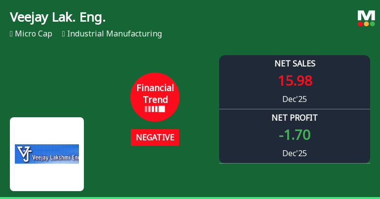 Veejay Lakshmi Engineering Works Ltd, a player in the industrial manufacturing sector, has reported a marked deterioration in its financial performance for the quarter ended December 2025. The company’s latest results reveal a significant contraction in revenue and profitability, signalling a shift from a previously flat financial trend to a distinctly negative trajectory.
