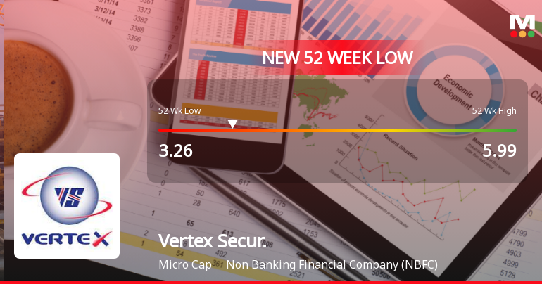 Vertex Securities Ltd’s share price has been on a downward trajectory over recent periods. In the past week, the stock fell by 3.45%, significantly underperforming the Sensex, which declined by only 0.99% during the same timeframe. The one-month performance also shows a similar trend, with the stock dropping 2.67% compared to the Sensex’s 1.20% fall. More strikingly, the year-to-date (YTD) and one-year returns reveal a steep decline of approximately 35%, while the Sensex has gained over 8% in both periods. This stark contrast highlights the stock’s relative weakness amid a generally positive market environment.