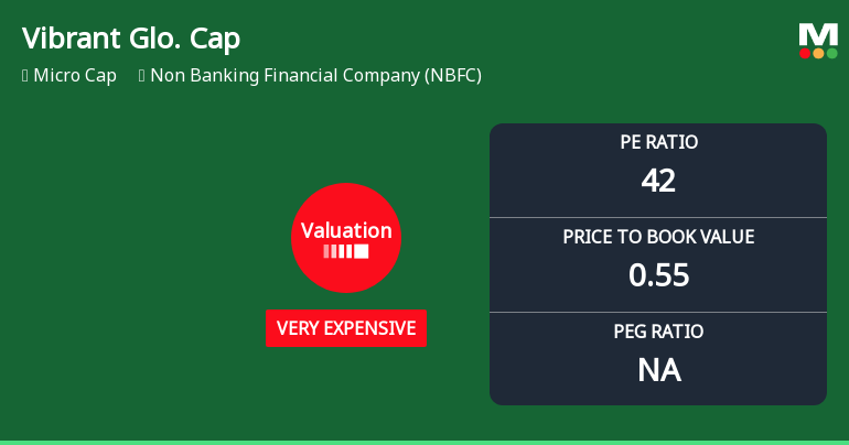 2026-02-13 08:01:17Vibrant Global Capital Ltd, a Non Banking Financial Company (NBFC), has seen a marked deterioration in its valuation attractiveness as key multiples surge to elevated levels. Despite a recent uptick in share price, the company’s price-to-earnings (P/E) ratio now stands at 41.84, categorising it as very expensive relative to its historical and peer averages. This shift has prompted a downgrade in its Mojo Grade to Strong Sell, reflecting heightened investor caution amid weak profitability metrics and challenging sector dynamics.