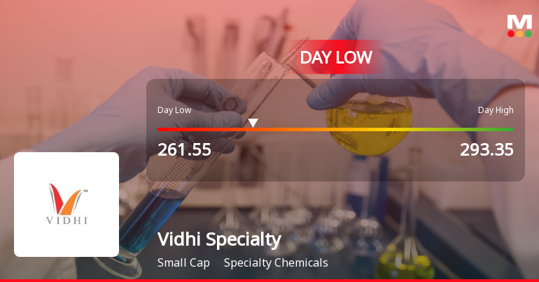 "description": "Despite a broader market rebound, Vidhi Specialty Food Ingredients Ltd has slipped to a fresh 52-week low, closing near Rs 262 on 23 Mar 2026. This decline comes amid persistent underperformance relative to the sector and key indices, signalling ongoing headwinds for the small-cap specialty chemicals player."
