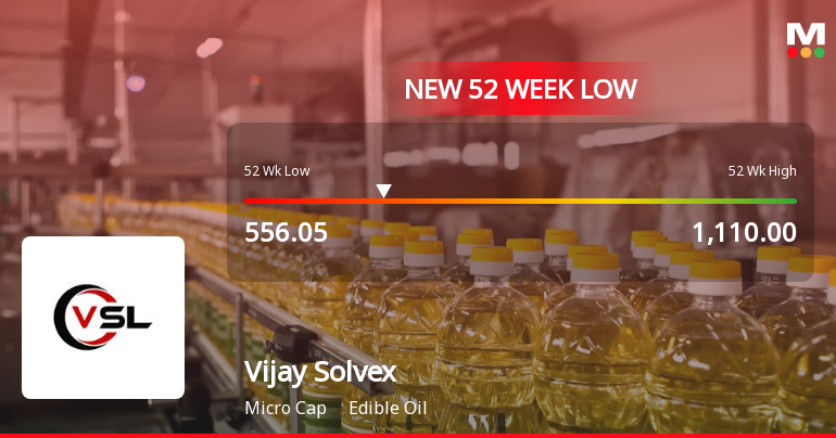 Vijay Solvex Ltd Falls to 52-Week Low of Rs.556.05 Amid Continued Underperformance