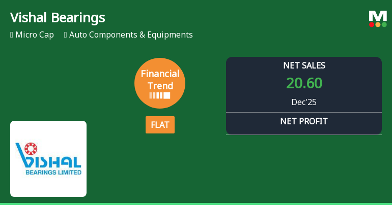 2026-02-13 11:01:14Vishal Bearings Ltd, a key player in the Auto Components & Equipments sector, has reported a flat financial performance for the quarter ended December 2025, marking a significant shift from its previously positive growth trajectory. The company’s financial trend score has dropped sharply from 9 to 0 over the past three months, signalling a pause in momentum that investors and analysts are closely monitoring.