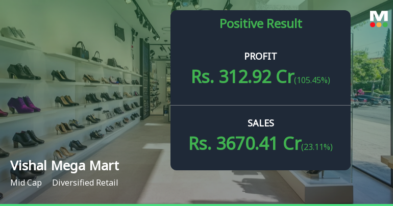 "description": "Vishal Mega Mart Ltd's latest financial results for the quarter ending December 2025 highlight a significant operational performance during the festive season. The company reported a net sales figure of ₹3,670.41 crores, reflecting a quarter-on-quarter growth of 23.11% compared to the previous quarter's decline of 5.06%. This growth is indicative of the seasonal demand typical in the retail sector during festive periods.\n\nThe net profit for the same quarter reached ₹312.92 crores, marking a substantial quarter-on-quarter increase of 105.45%, contrasting with a decline of 26.09% in the prior quarter. This impressive profit growth, while notable, is influenced by the strong performance in the previous year’s festive quarter, resulting in a year-on-year profit increase of 19.11%.\n\nOperating margins also demonstrated a positive trend, expanding to 16.49% from 13.23% in the previous quarter, showcasing the compa..."