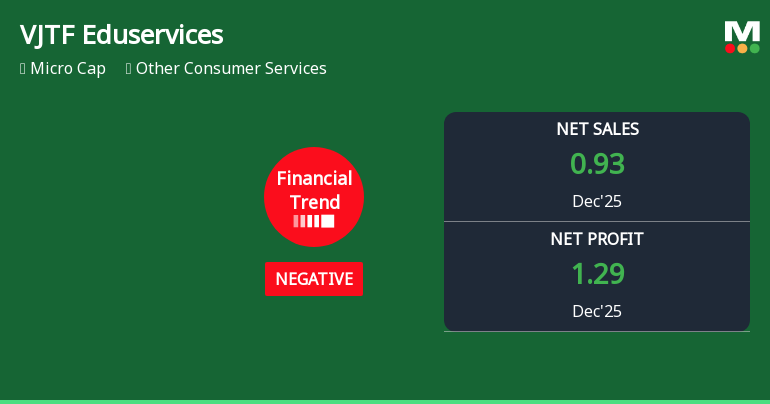 2026-02-20 10:10:20VJTF Eduservices Ltd is rated Strong Sell by MarketsMOJO, with this rating last updated on 18 Nov 2025. However, the analysis and financial metrics discussed here reflect the stock’s current position as of 20 February 2026, providing investors with the most up-to-date view of the company’s fundamentals, valuation, financial trends, and technical outlook.