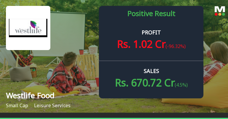 2026-02-04 19:20:10Westlife Foodworld Ltd's latest financial results for Q3 FY26 reveal a complex operational landscape characterized by significant challenges. The company reported net sales of ₹670.72 crores, reflecting a sequential growth of 4.50% from the previous quarter. This marks the highest quarterly revenue in recent history, although year-on-year revenue growth has slowed to 2.60%, indicating a potential softening in demand within the quick-service restaurant sector. Despite the positive sales figures, the company's net profit plummeted to ₹1.02 crores, a drastic decline of 96.32% compared to the previous quarter. This sharp decrease highlights severe pressures on profitability, with the profit after tax (PAT) margin collapsing to just 0.15%. The operating margin, however, showed some resilience, improving to 14.61%, which is the highest in recent quarters, suggesting some success in cost management at the operati...