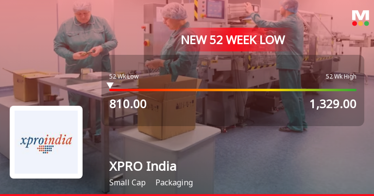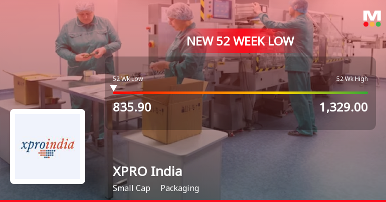 "description": "XPRO India Ltd, a key player in the packaging sector, recorded a new 52-week low of Rs.835.9 today, marking a significant decline in its stock price amid broader market and sector pressures. The stock has been on a downward trajectory for four consecutive days, shedding 8.5% over this period, reflecting ongoing challenges within the company and the packaging industry."