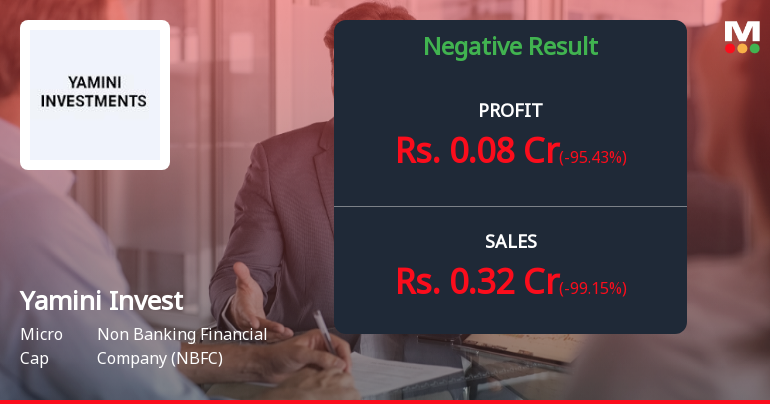 "description": "Yamini Investment Company Ltd's latest financial results for Q3 FY26 highlight significant operational challenges. The company reported a net profit of ₹0.08 crores, which reflects a substantial decline of 95.43% year-over-year. Similarly, net sales plummeted to ₹0.32 crores, marking a dramatic 99.15% decrease compared to the same quarter last year. This stark revenue contraction raises serious concerns regarding the company's business sustainability and operational viability.\n\nDespite the severe drop in revenue, Yamini Investment managed to maintain a profit after tax (PAT) margin of 25.00%, which is an improvement from the previous quarter's margin of 19.23%. This indicates that while the company is facing challenges in generating sales, it has been able to maintain profitability on a very limited revenue base. However, this margin expansion does not alleviate the concerns stemming from the overall revenu..."