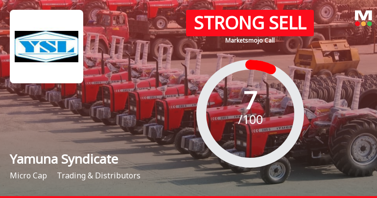 2026-03-19 10:10:20Yamuna Syndicate Ltd is rated Strong Sell by MarketsMOJO, with this rating last updated on 07 Jul 2025. However, the analysis and financial metrics presented here reflect the stock's current position as of 19 March 2026, providing investors with an up-to-date view of the company’s fundamentals, returns, and market performance.