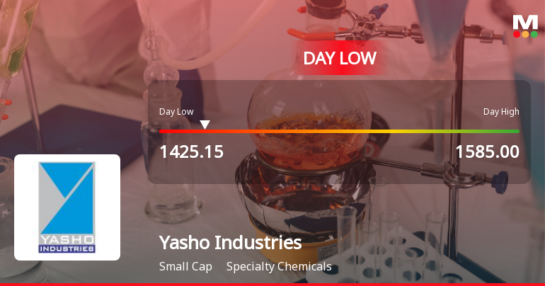 The Sensex advanced 2.26% on 24 Mar 2026, yet Yasho Industries Ltd outpaced the broader market with an 8.57% gain, reaching an intraday high of Rs 1477. This 4.51 percentage-point outperformance over the Specialty Chemicals sector’s 2.47% rise signals a distinctly stock-specific rally rather than a mere market tailwind.