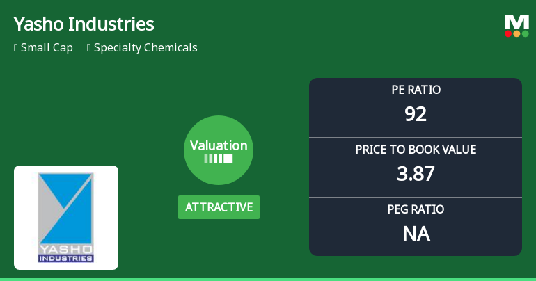 Yasho Industries Ltd has witnessed a notable shift in its valuation parameters, moving from a fair to an attractive rating despite a challenging market backdrop. With a current price of ₹1,371.20 and a market cap classified as small-cap, the specialty chemicals company’s price-to-earnings (P/E) and price-to-book value (P/BV) ratios now present a compelling case for investors seeking value within the sector.