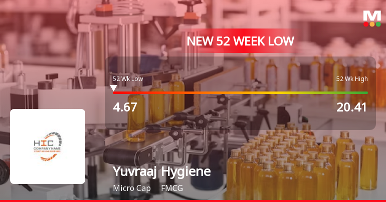 Yuvraaj Hygiene Products Ltd Falls to 52-Week Low of Rs.4.67