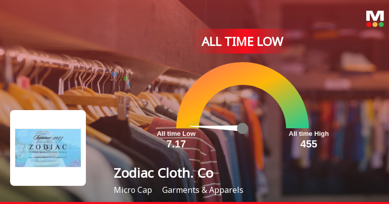 2026-04-05 10:10:11Zodiac Clothing Company Ltd is rated Strong Sell by MarketsMOJO, with this rating last updated on 07 Feb 2025. However, the analysis and financial metrics discussed here reflect the stock’s current position as of 05 April 2026, providing investors with an up-to-date view of the company’s fundamentals, valuation, financial trends, and technical outlook.